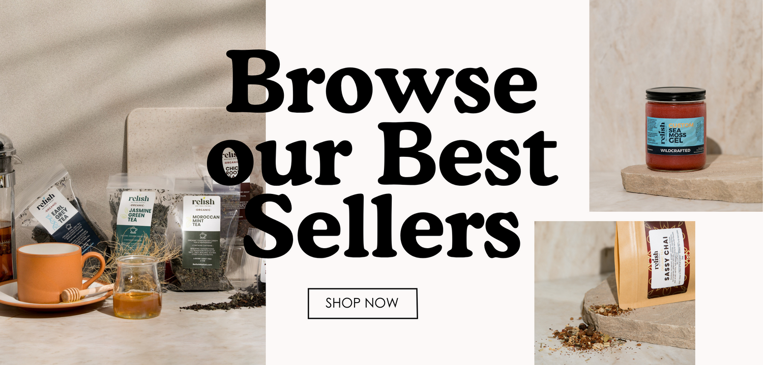 Welcome to Relish Wellness Market! We are here to make sure you have access to fresh, organic pantry + wellness items such as teas, condiments, mushroom, seamoss products, and more!